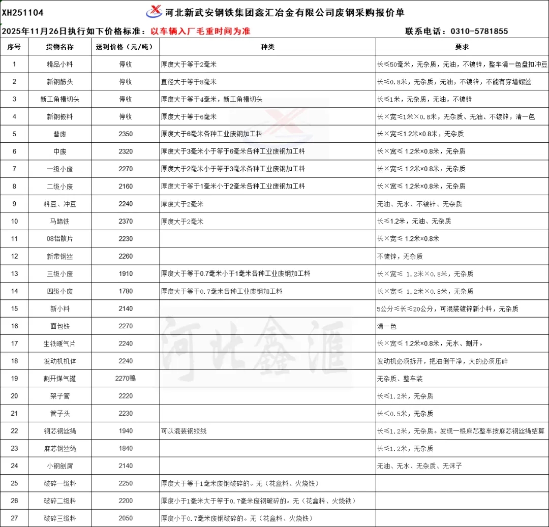 鑫匯廢鋼采購報價